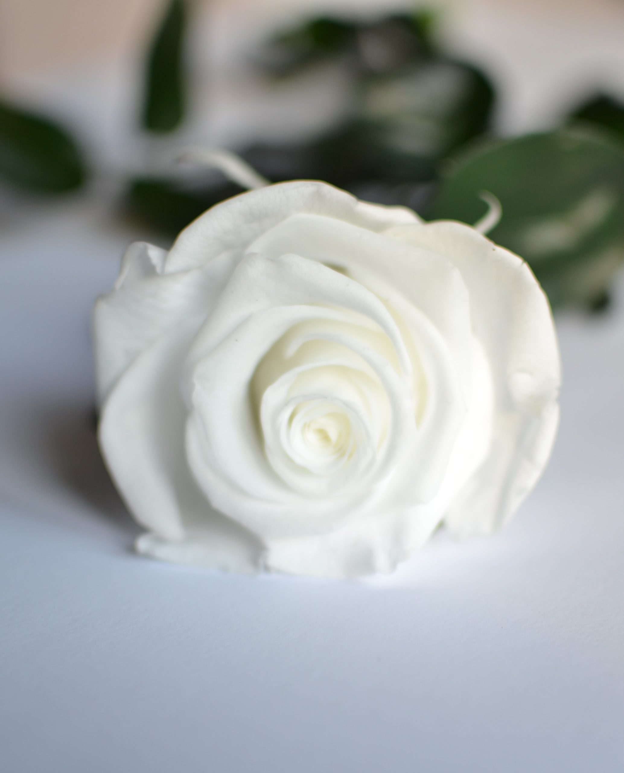 La rosa blanca preservada es una flor natural sometida a un proceso de conservaciรณn que le permite mantener su belleza y frescura durante aรฑos sin necesidad de agua ni mantenimiento. Gracias a este tratamiento especial, conserva su apariencia y textura como si estuviera reciรฉn cortada.