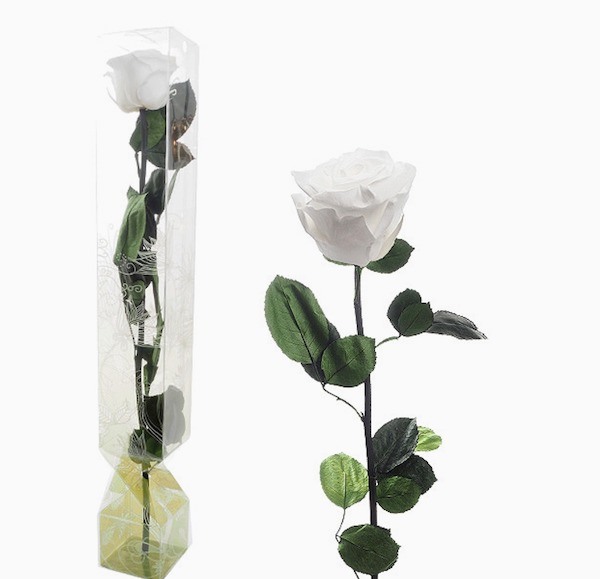A diferencia de las flores frescas, que se marchitan en pocos dรญas, la rosa blanca eterna puede mantenerse perfecta durante varios aรฑos. Estas flores no marchitan y aguantan perfectamente el paso del tiempo permitiendo que vivan en perfecto estado durante aรฑos.